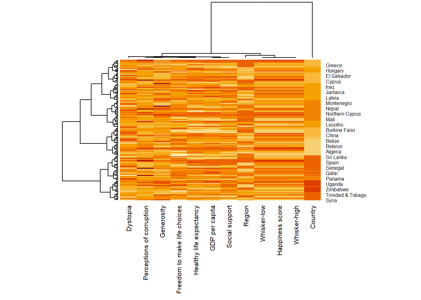 row.names(wh) <- wh$CountryTransforming the data frame into matrix